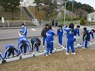 JRC部で学校前の道路にプランターを並べました。