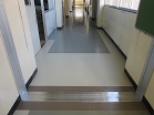 各階の廊下のビニル皮膜が劣化し、ところどころめくれて、子どもたちがつまずく危険があったことから、教育委員会に修繕を要望していたところ、一昨日から部分補修(張り替え)工事が入り、本日作業が完了しました。