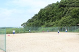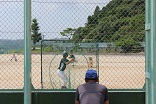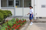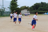 薄曇りの中、生徒たちは声をかけ合い活動しています。