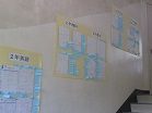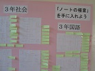 階段に『ノートの極意を手に入れよう』という掲示物があります。各学年の参考になるノート例がいくつかあります。また、他学年の例も参考にしてほしいです。