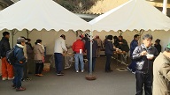 10:00のサイレンの合図で、下大越自主防災会、藤間自主防災会、防災士会福島県支部、市避難所班の参加のもと、津波避難訓練・避難所開設及び運営訓練・給水訓練・炊出し訓練等が行われ、参加者は真剣に訓練に取り組んでいました。