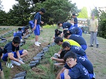 NPOふくしま環境未来基地の方々と一緒に松苗の植え付けをしました。