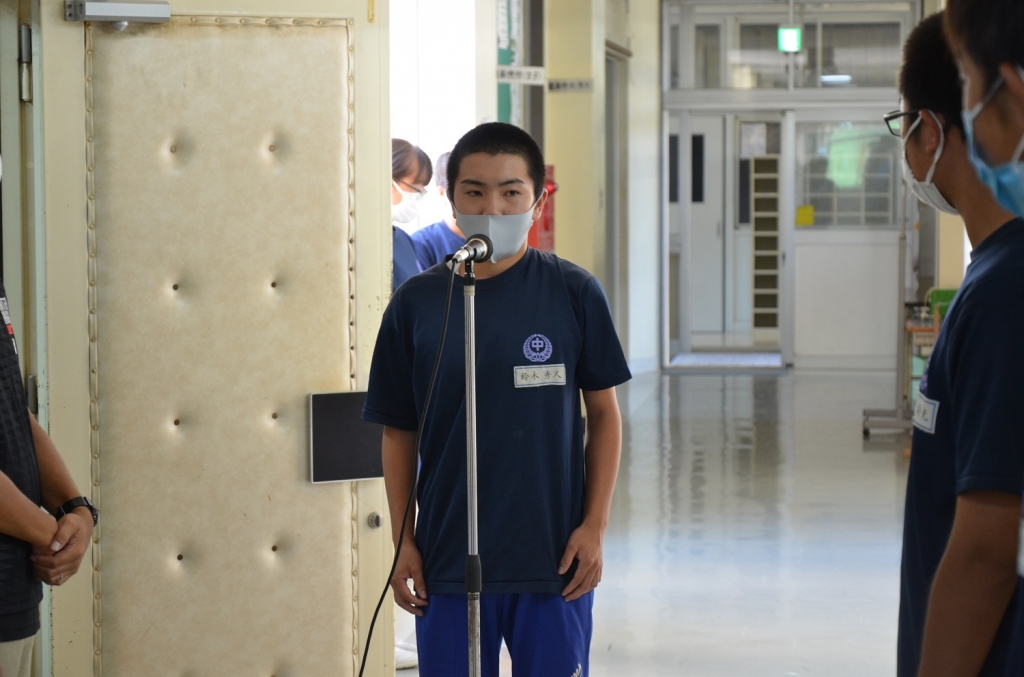 本来であれば、体育館で行う予定でしたが、新型コロナウイルス感染予防のため、放送での実施となりました。