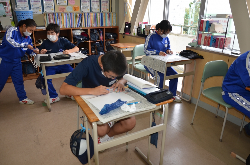 本日6校時目に、潮風祭に向けてシンボル画の作成を始めました。