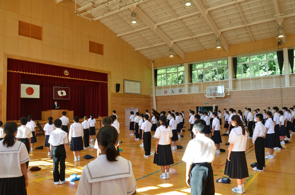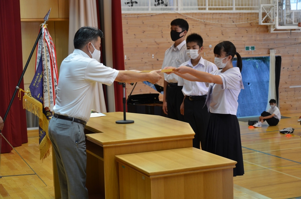 始業式終了後には、夏休み中に行われたいわき市中学校体育大会各競技大会の表彰、いわき市英語弁論大会に向けての発表を行いました。