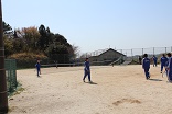 野球部とソフトテニス部は、午前、バレーボール部とソフトボール部が午後からの練習です。上級生が1年生に丁寧に教えています。