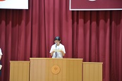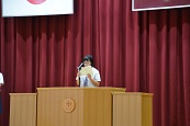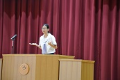 また、8月30日に行われます英語弁論大会に出場する箱﨑桃子(3年2組)のスピーチも行われました。