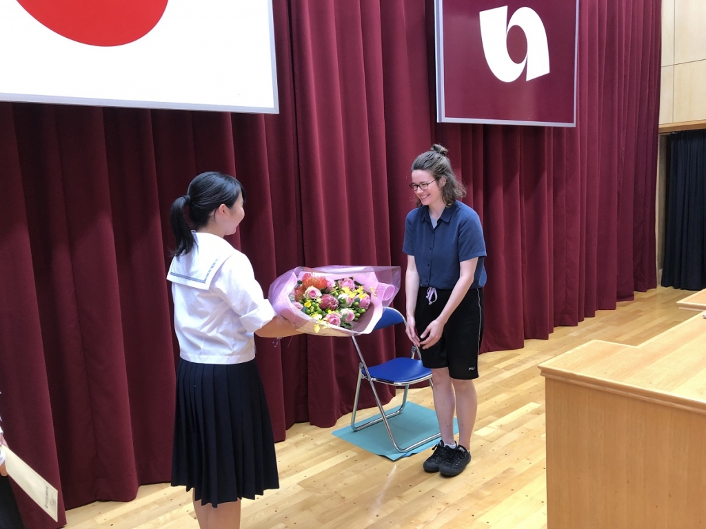 本日6校時終了後、3年間お世話になったステェファニー先生の送別会を行いました。