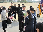 本日、離任式を行いました。人事異動により、今年度は5名の先生が転出されることになりました。卒業生や保護者の方も来校され、最後の挨拶では涙を流す場面もありました。見送りでは、一人一人感謝の気持ちを伝えていました。今まで、大変お世話になりました。新任地での益々の活躍を祈っております。
