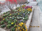 また、同じ頃プール脇の花壇では、JRC部の生徒たちが花壇の手入れをしていました。先日JRC部員が植えた校舎前花壇の花が見頃を迎えています。