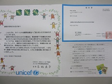 ユニセフより感謝状が届きました。みなさまへ改めて感謝申し上げます。