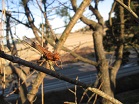 モズという鳥が、捕えた昆虫やカエルなどの獲物を枝の先に刺したものを「モズのはやにえ」といいます。餌が不足するころのたくわえなのでしょうか。