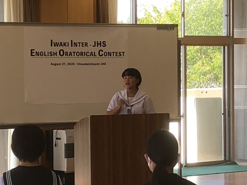 8月27日(木)に中央台南中学校にて開かれたいわき市中学校英語弁論大会に、本校から3年生の生徒1名が参加しました。