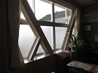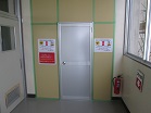 仮間仕切りされた3階廊下)(工事終了した1年教室)