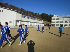 今朝は、特設駅伝部の練習始め。冬のさわやかな日差しの中、生徒たちは真剣に練習に取り組んでいました。