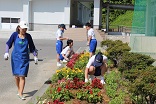 午前中は、JRC部が花壇への水やりと除草を行いました。