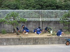 運動部がグラウンドで活動している間、JRC部の生徒達が汗をかきながら一生懸命プール前花壇の草むしりをしている姿が見えました。