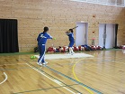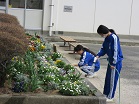JRC部は花壇の手入れと平成27年度の活動が説明できるようまとめていました。ソフトボール部は雨天のため体育館で練習しています。