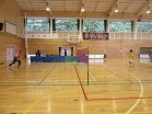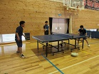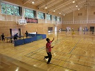 今日の体育館の部活動です。今日はバレーボール部、特設卓球部、特設バドミントン部の3つの部活動が一緒に行いました。特設バドミントン部は、渡邉翔くん対佐々木先生で試合を行い熱戦でした。特設卓球部は、3人で協力して試合やサーブの練習を行いました。バレー部は、2・3年生は試合、1年生もサーブの練習など一生懸命に取り組んでいました。
